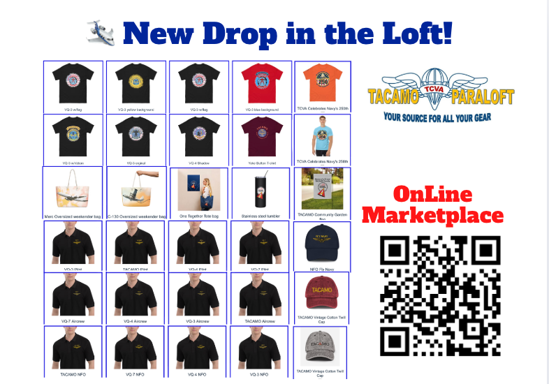 Let’s kick off Christmas shopping together—perfect gifts for veterans, families, and friends who love TACAMO! TCVA has lowered the Cookbook price—just $20 each or 2 for $35! While you’re at it, be sure to browse the other great items in the Paraloft.